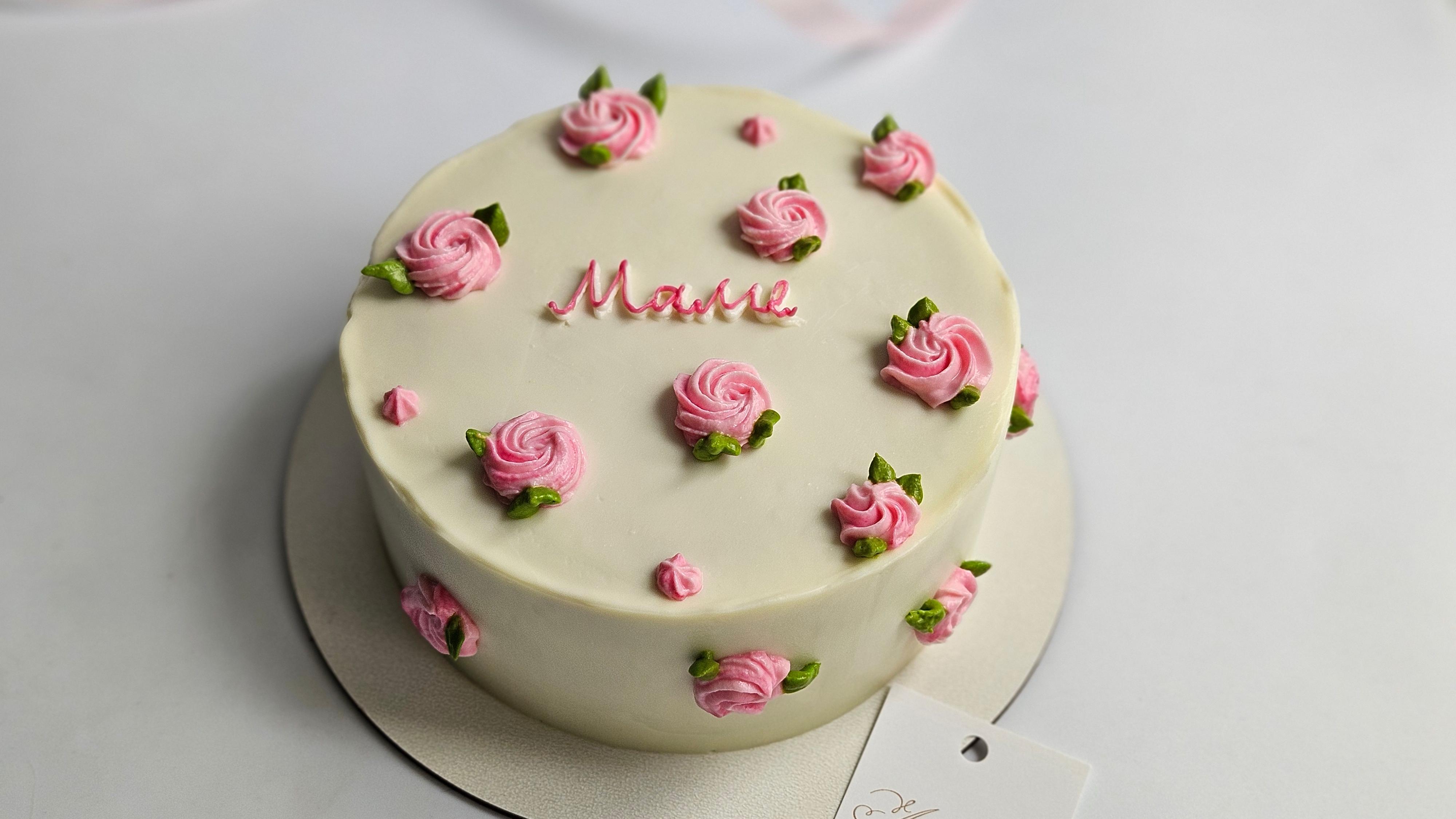 Бенто торт маме, оформленный кремовыми цветочками. Начинки в ассортименте